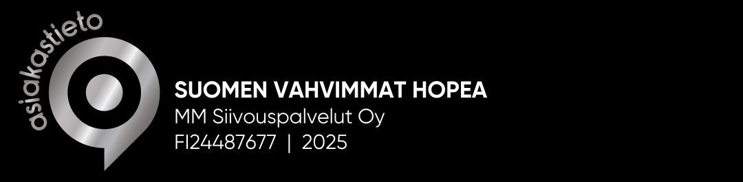 MM Siivouspalvelut Oy toimii Espoosta käsin. Suomalaiselle perheyrityksemme vuosi 2024 on 20-vuotisjuhlavuosi, ja asiakaskuntamme laajenee jatkuvasti. Siivouspalvelu on tilattavissa kaikkialla pääkaupunkiseudulla. Siivoojamme ovat tunnettuja ystävällisestä palvelusta ja ammattitaidostaan, jolla hoidamme kaikenlaiset siivoukset. Kaikilla työntekijöillämme on Suomen veronumero.